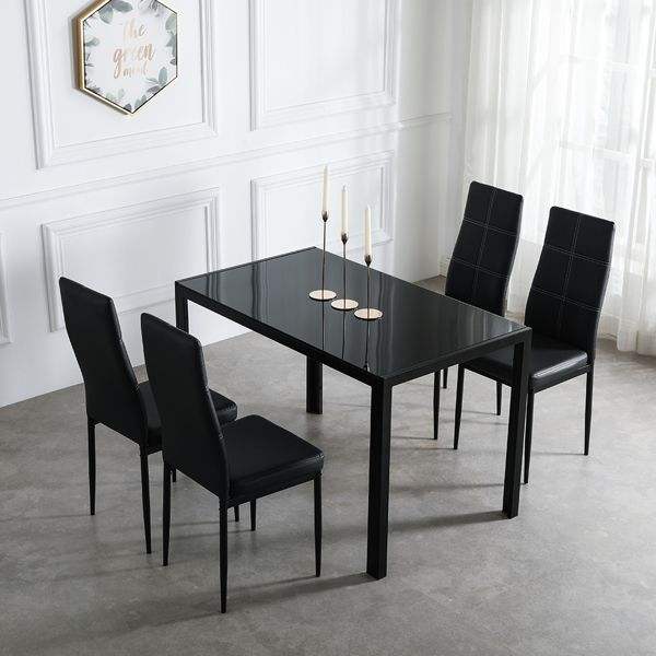 Elegante 4 pz sedie da pranzo con 6 griglie decorazione schienale cuscino bianco e colore nero