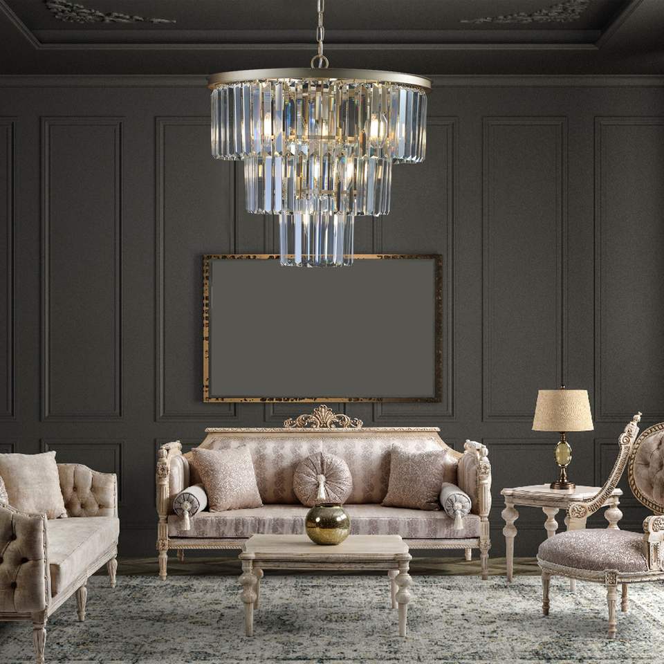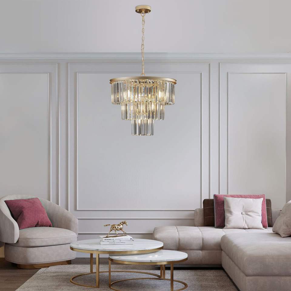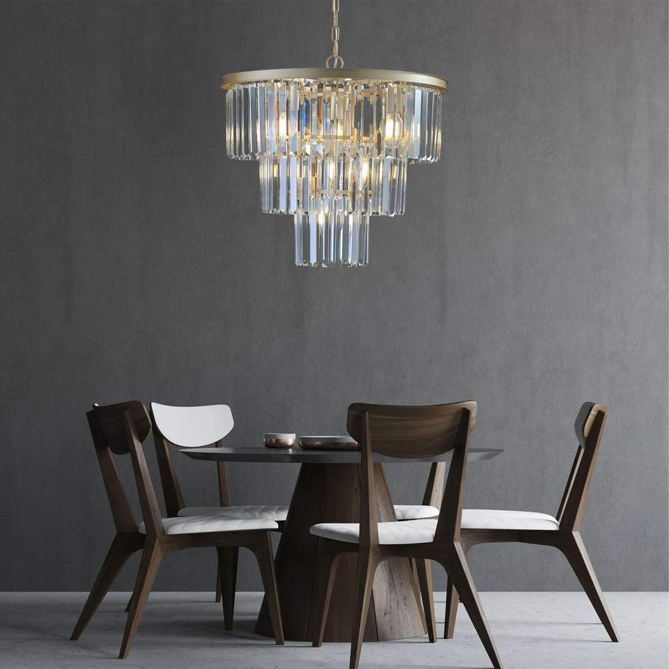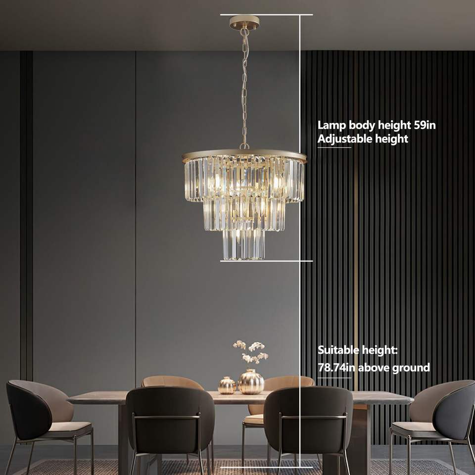 Elegante Lampadario Moderno a 7 Luci da 20 Pollici in Cristallo, Finitura Oro, a 3 Livelli, per Sala da Pranzo e Soggiorno, Lampada a Sospensione Unica in Cristallo