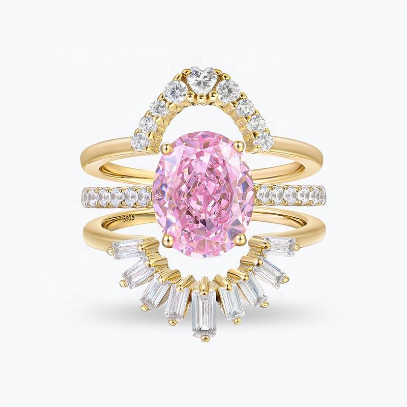 Elegante Amazonitee 14K placcato oro 925 Sterling Set da sposa taglio ovale in tre pezzi incluso cerchiante banda di matrimonio