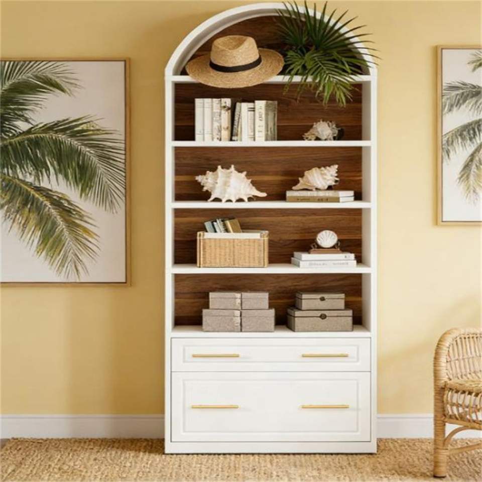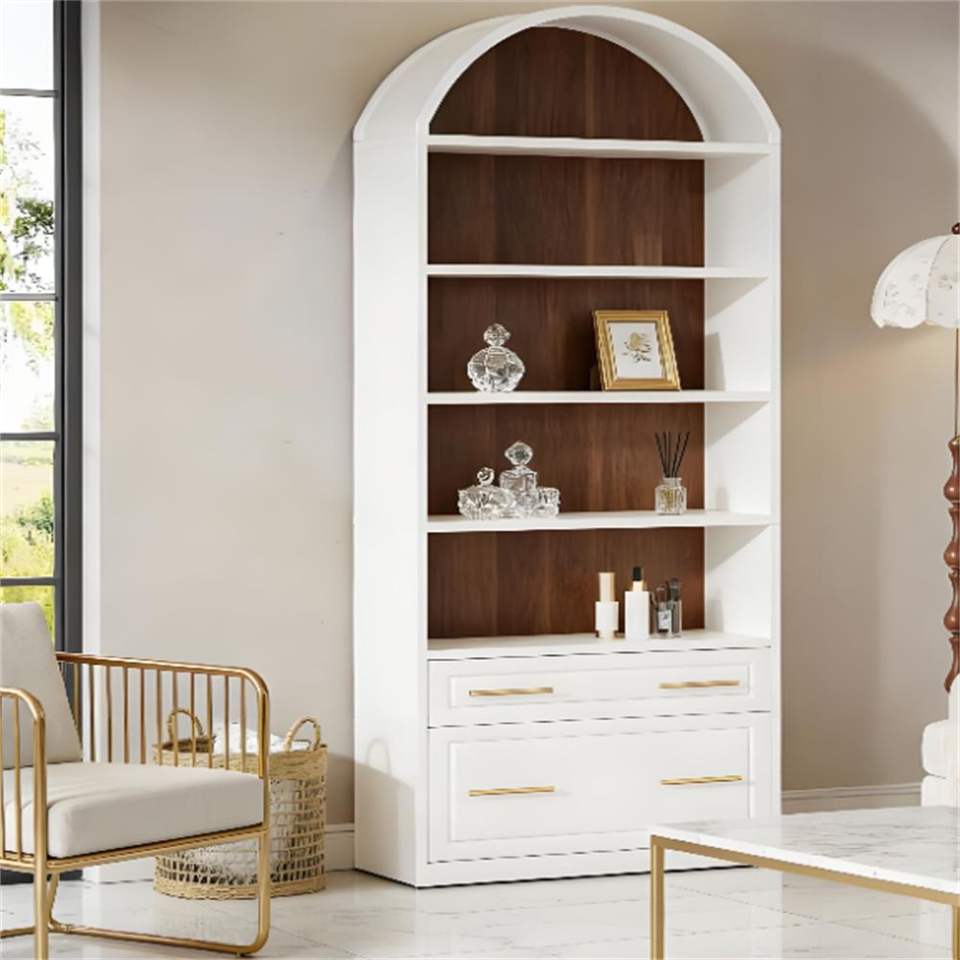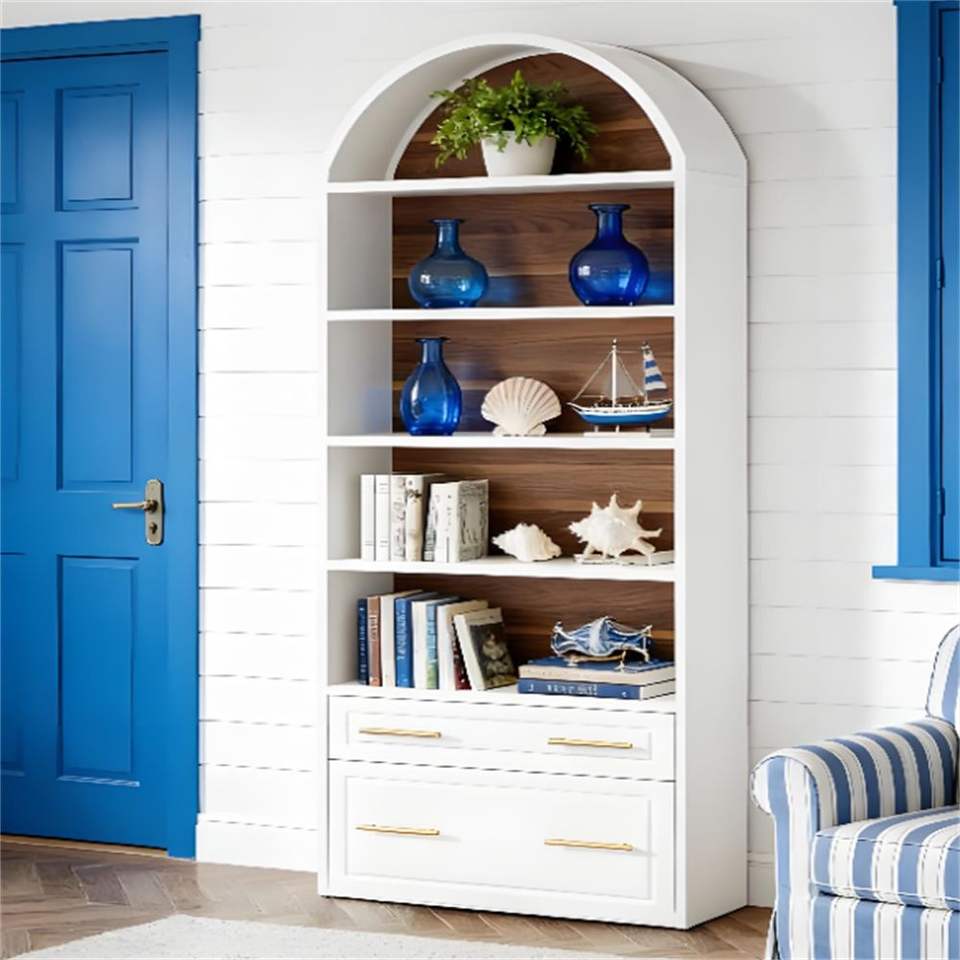 Elegante Libreria e Vetrina dal Design Arcuato con Ampi Cassetti Portadocumenti per Esposizione e Soluzioni di Archiviazione