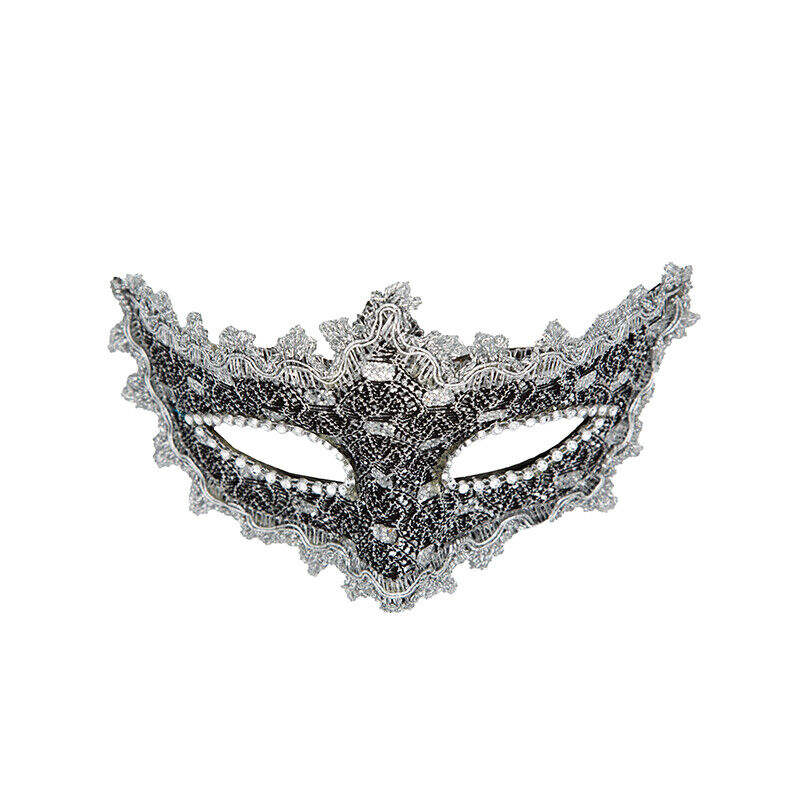 Elegant Black and Silver Lace Venetian Mask with Rhinestones Original Carnival Accessory and Perfect Party Gift for Women