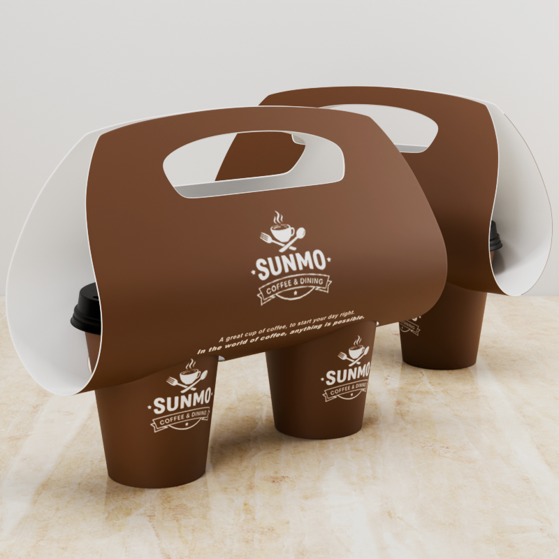 Elegante Set di Imballaggi Personalizzabili Marroni per Asporto - Tazze da Caffè, Contenitori per Pranzo e Sacchetti di Carta Brandizzati per Caffetterie