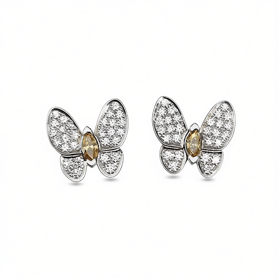 Elegant Butterfly Diamond Earrings White Gold Marquise Cut Fancy Natural Diamond Women's Cute Everyday Wear Silver Jewelry