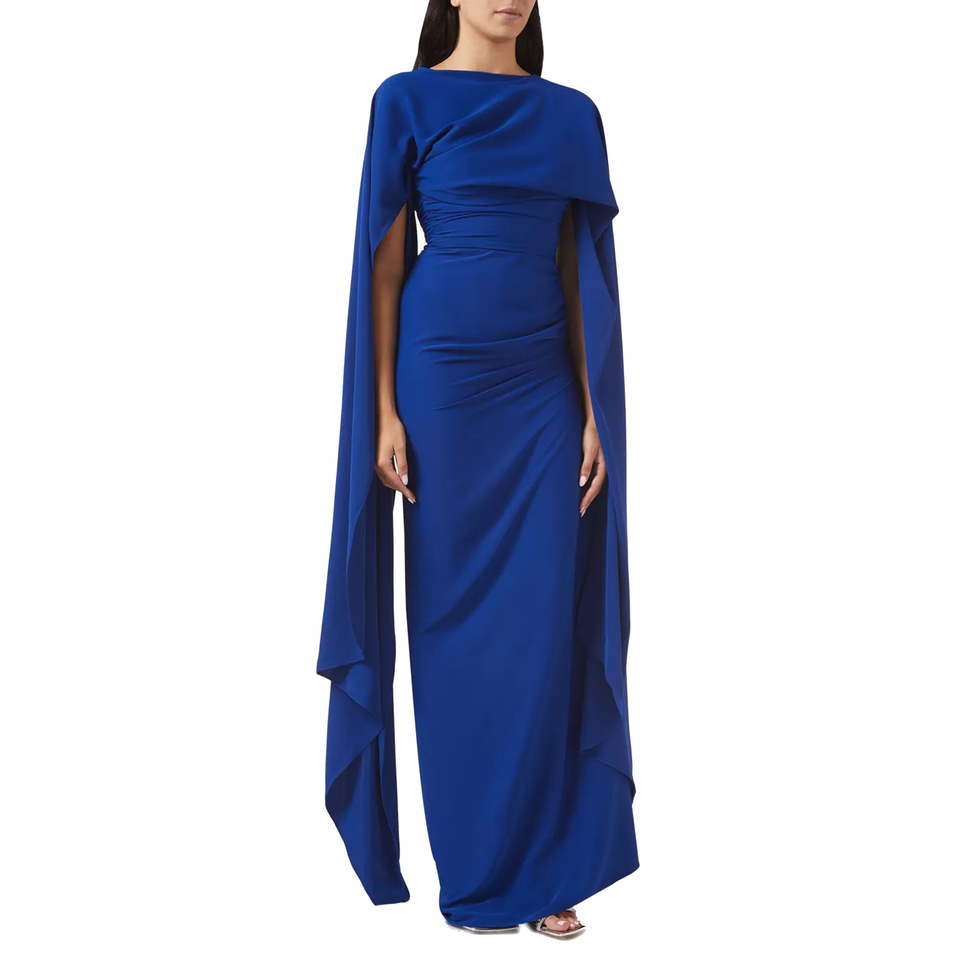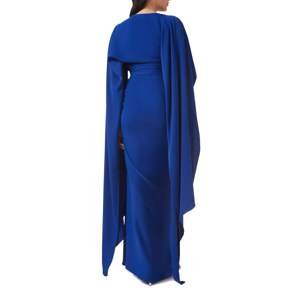 Elegant Cape - Sleeve Maxi Dress Women's Formal Evening Party Long Gown With Draped Design