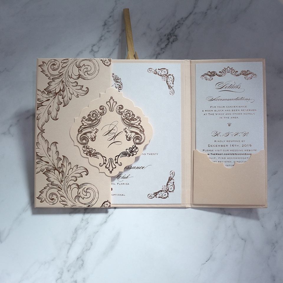 Keywords:Elegant Gold Foil Hardcover Wedding Invitations