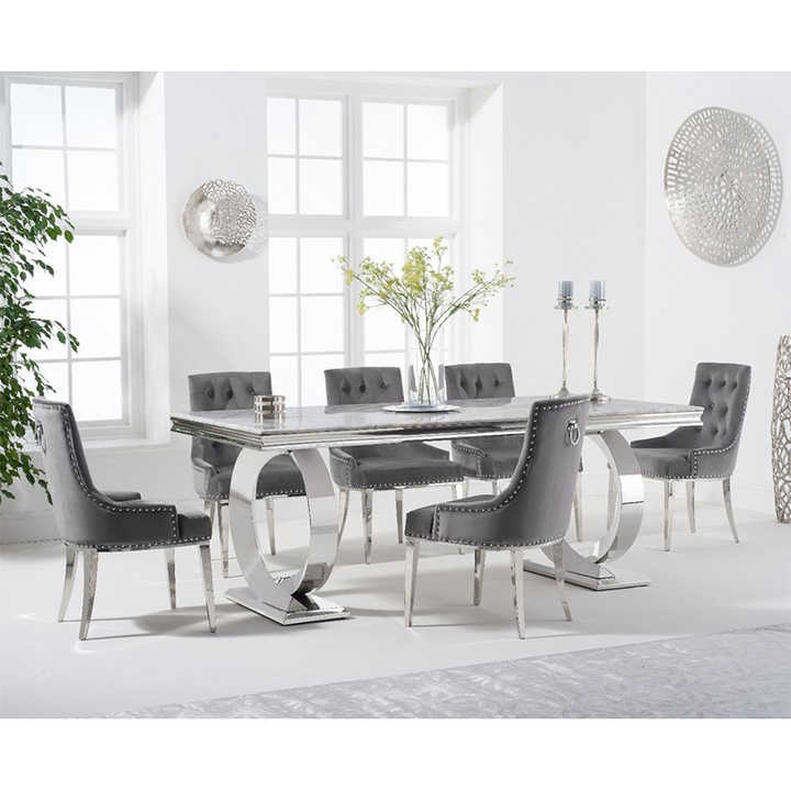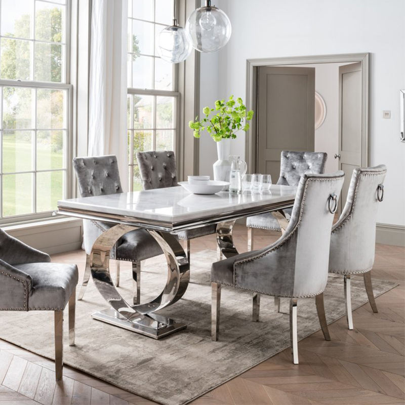 Tavolo da Pranzo di Lusso Italiano con Gambe in Acciaio Inox e Piano in Marmo, Design Elegante, Prezzo all'Ingrosso