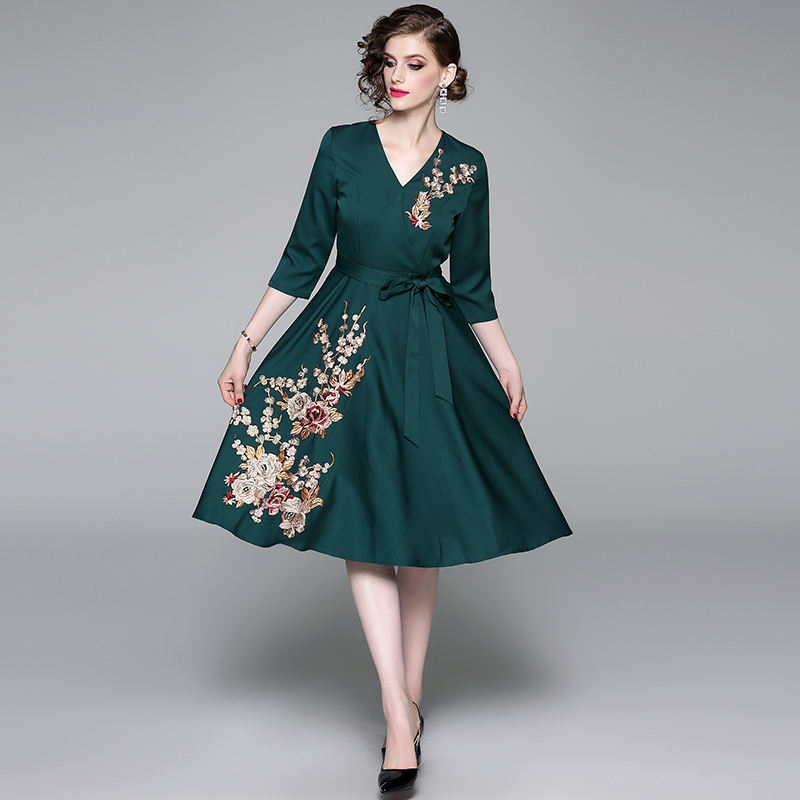 Design elegante con scollo a V abiti da sera sottili da donna abiti Vintage da banchetto ricamati