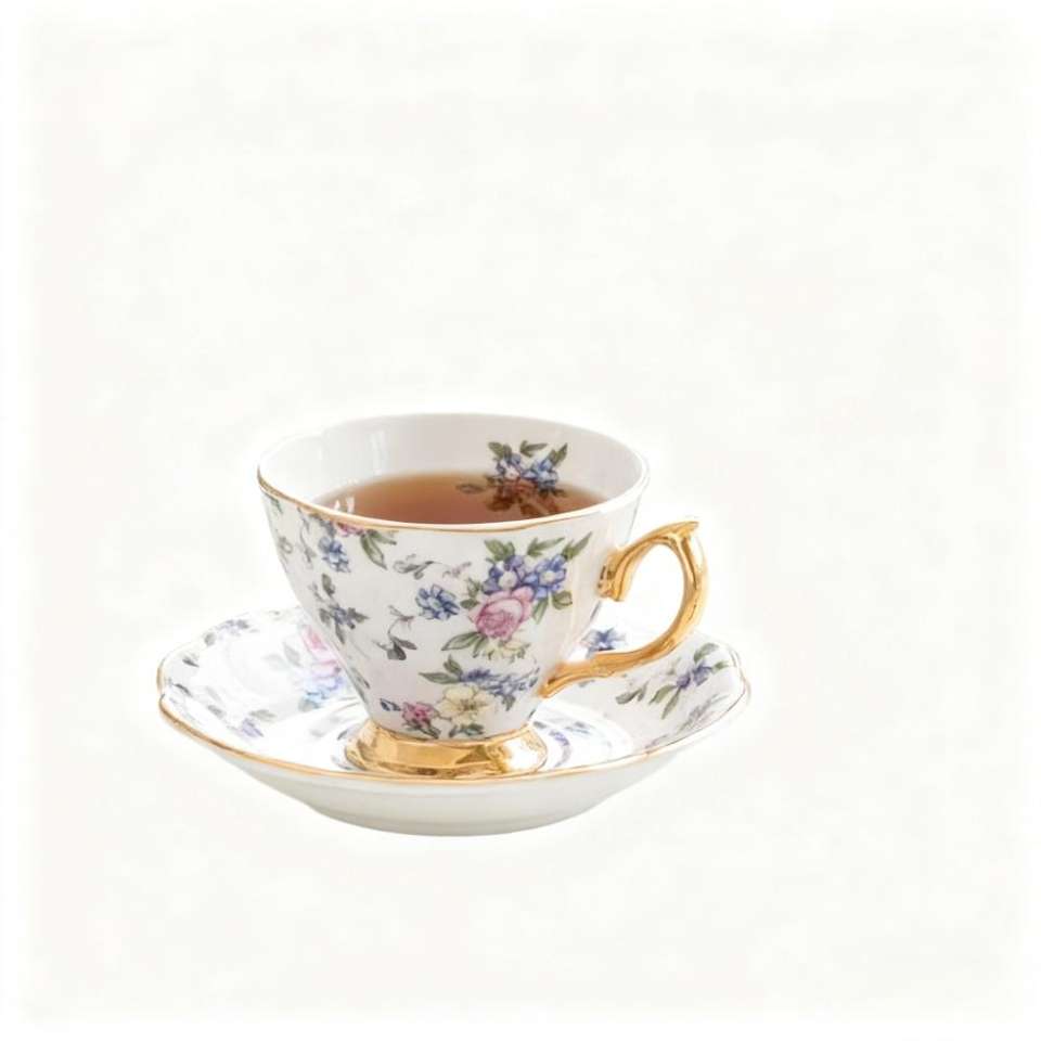 Elegante portabicchieri e piattino in ceramica con set da tè europeo europeo di alta qualità floreale con manico in oro
