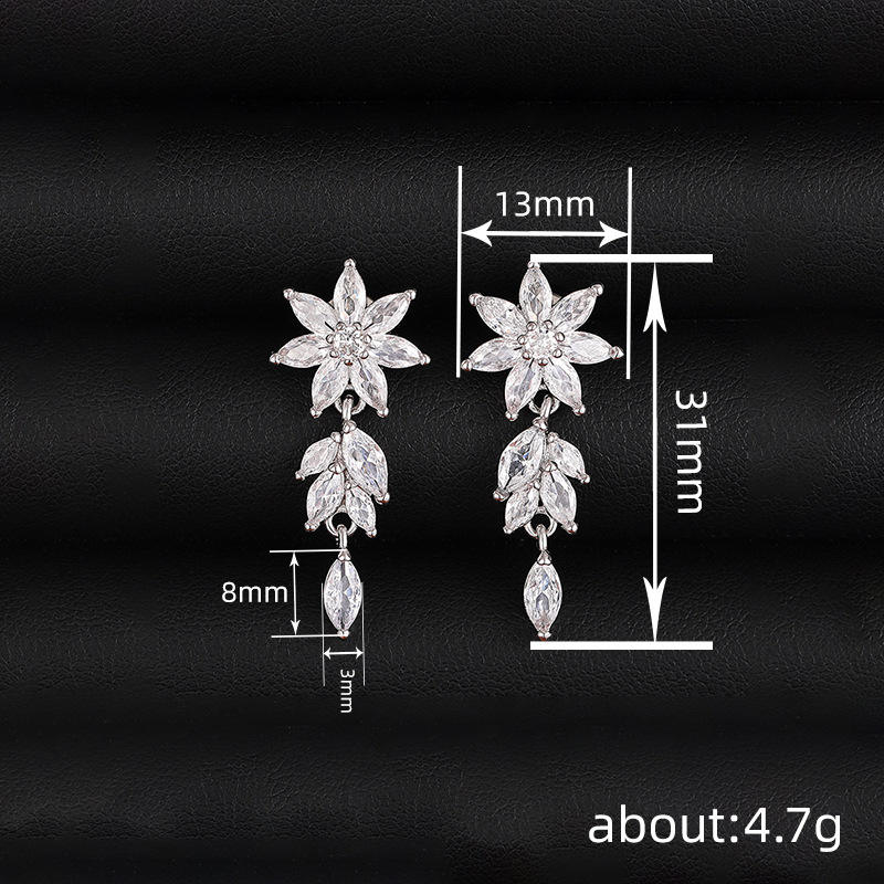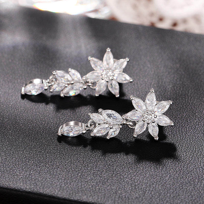 Elegant Flower Drop Earrings White Gold Marquise Cut Zircon Claw Setting Women's Wedding Romantic Style E3932