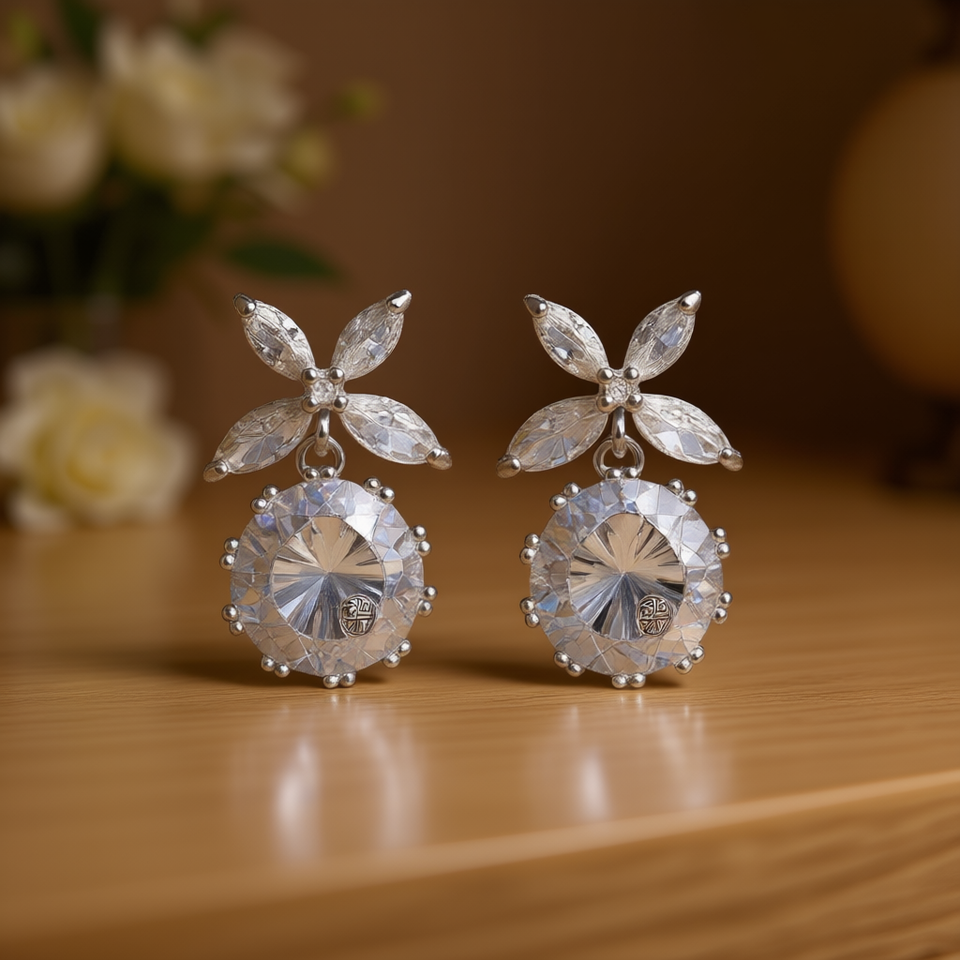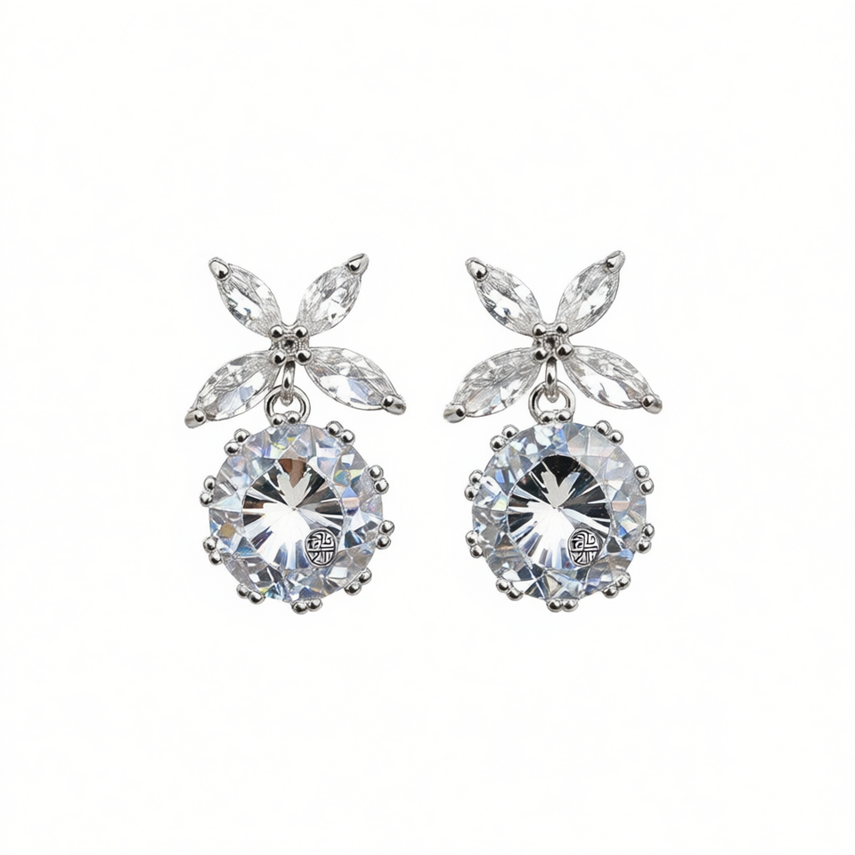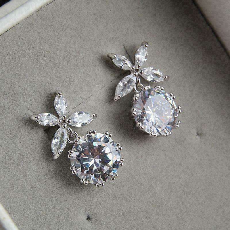 Elegant Flower Drop Earrings White Gold Plated Crystal Rhinestone Round Brilliant Cut Women's Wedding Classic Jewelry