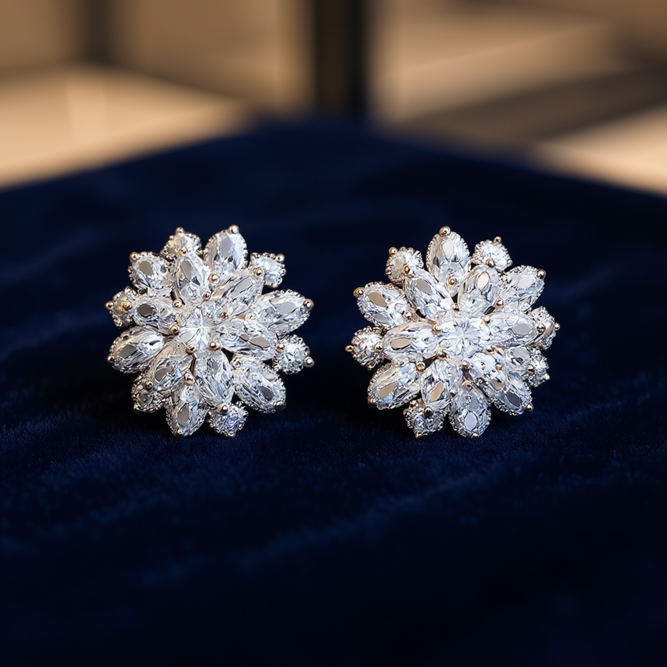Elegant Flower Stud Earrings White Gold 925 Silver Crystal Rhinestone Claw Setting Romantic Wedding Jewelry For Women