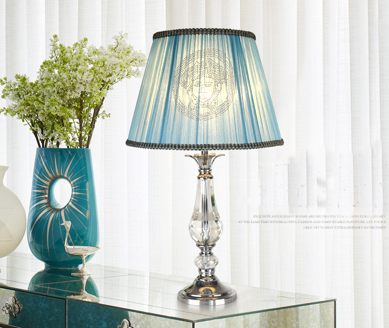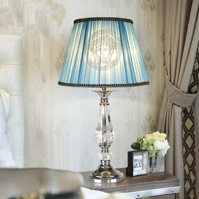 Elegante Lampada da Comodino in Stile Francese di Lusso con Paralume Blu per Arredamento Casa BF05-NS-1136