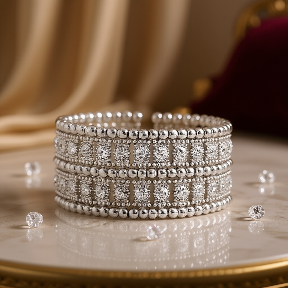 Elegant Gold Plated Crystal Cuff Bracelets For Women Party Jewelry With Bezel Setting BQ7739