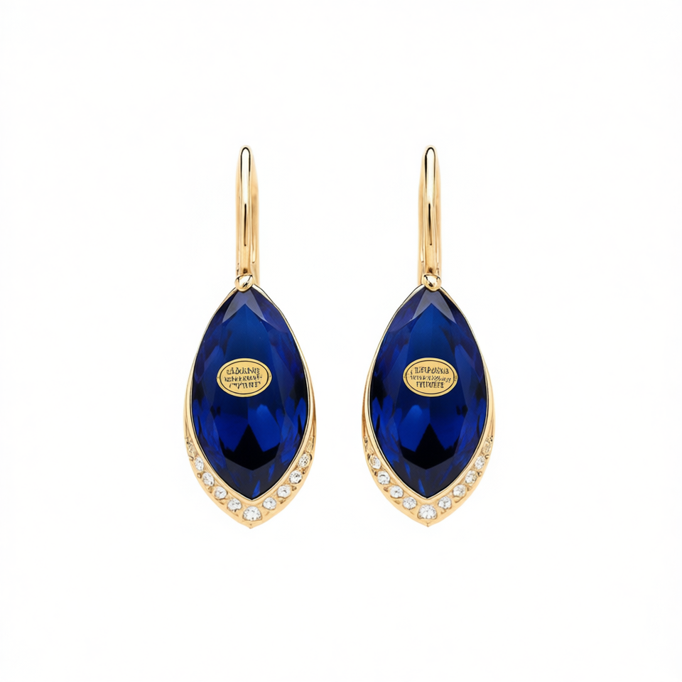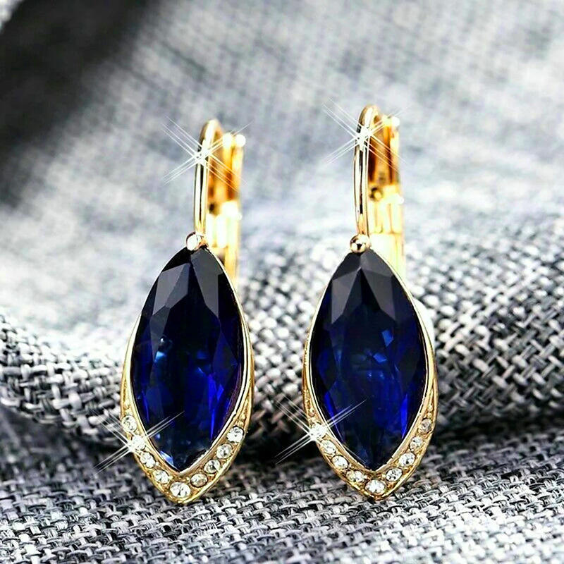 Elegant Gold Plated Drop Earrings With Blue Gemstone Water Drop Shape Bezel Setting For Women Party Jewelry 18K Gold Filled