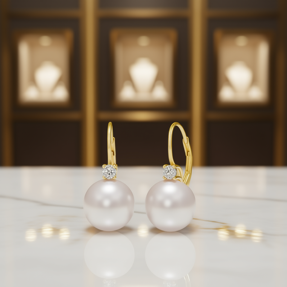 Elegant Gold Plated Pearl Drop Earrings With Round Diamond Women's Classic Wedding Fashion Jewelry Imitation Pearl Ball Shape