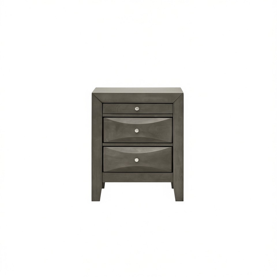 Gray Storage Nightstand 3 Drawers Modern Wooden Bedroom Furniture