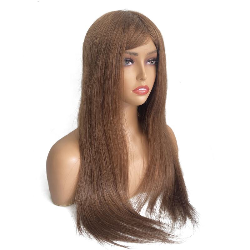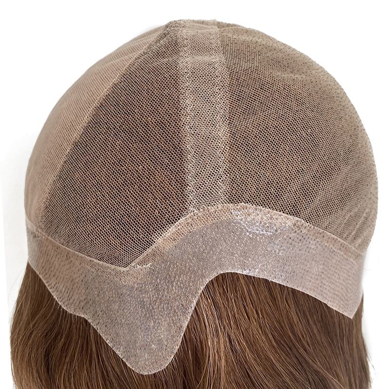Parrucca da donna elegante con base in pizzo personalizzata, parte superiore in seta, perimetro in PU sottile, capelli umani vergini peruviani.