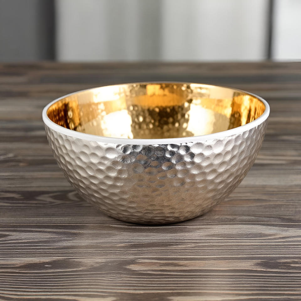 Elegant Hammered Aluminum Silver Bowl Luxe Gold Interior Modern Asymmetric Decorative Accent Customizable Eco-Friendly Dish