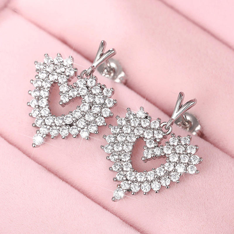 Elegant Heart Cut Diamond Earrings 18K Solid Gold White Gold Women's Wedding Romantic Style Fine Jewelry
