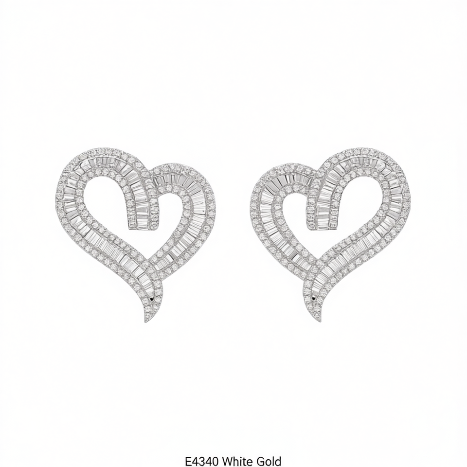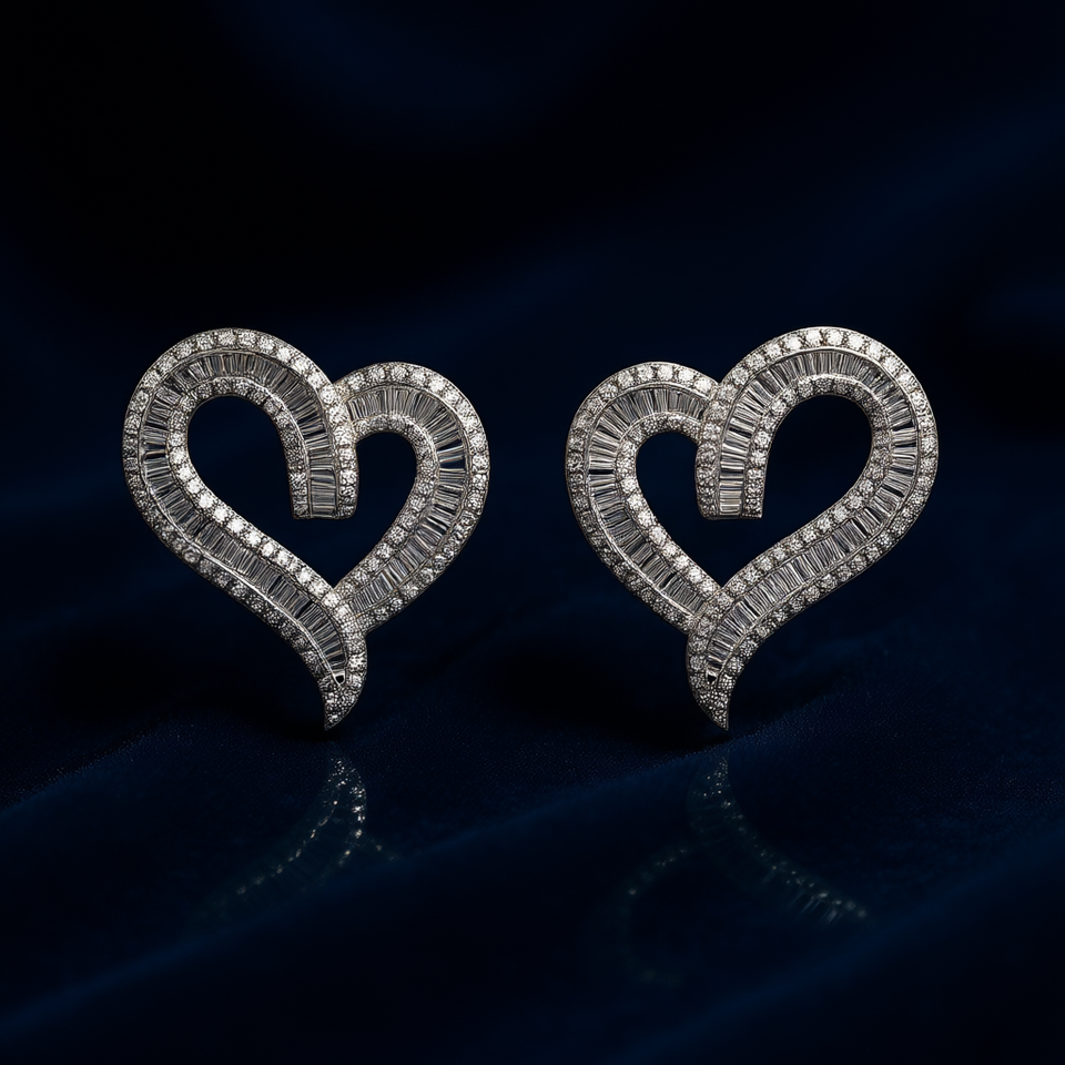 Elegant Heart Cut Diamond Earrings White Gold Women's Wedding Romantic Style Natural Diamonds D Color
