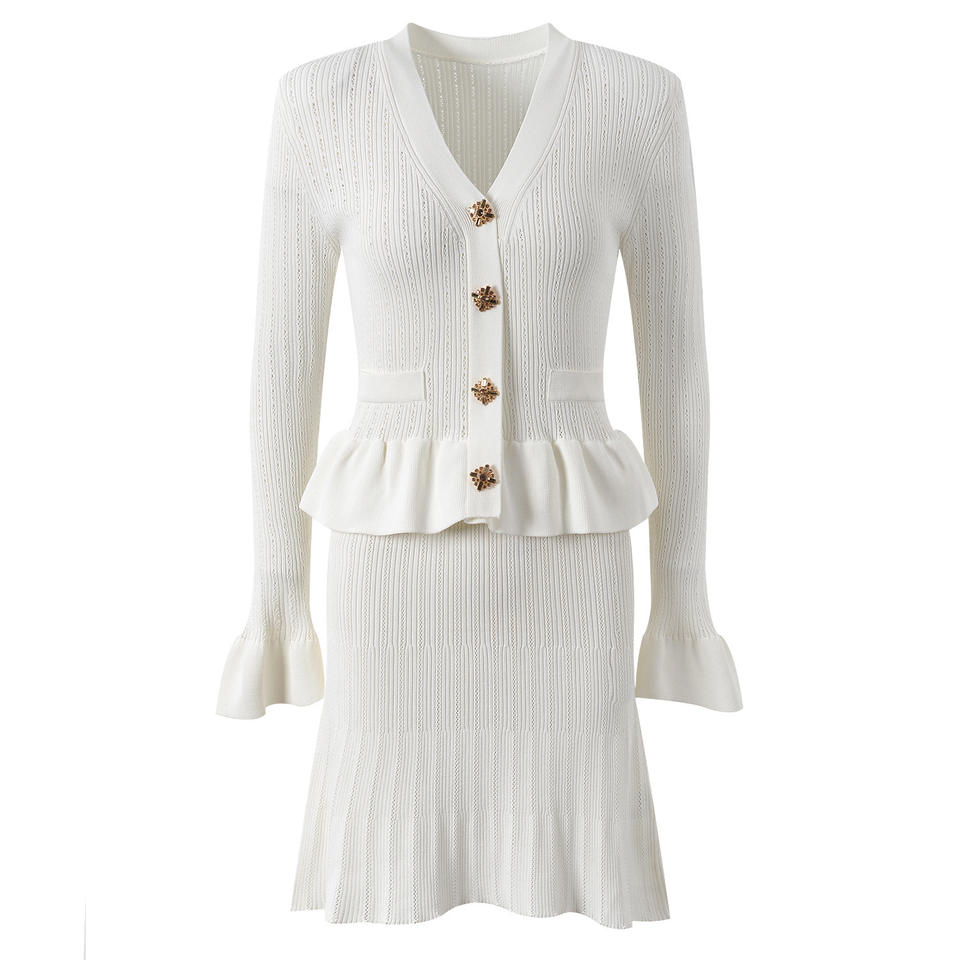 Elegante alta qualità tinta unita con scollo a V manica lunga vestibilità e svasato Mini abito da donna