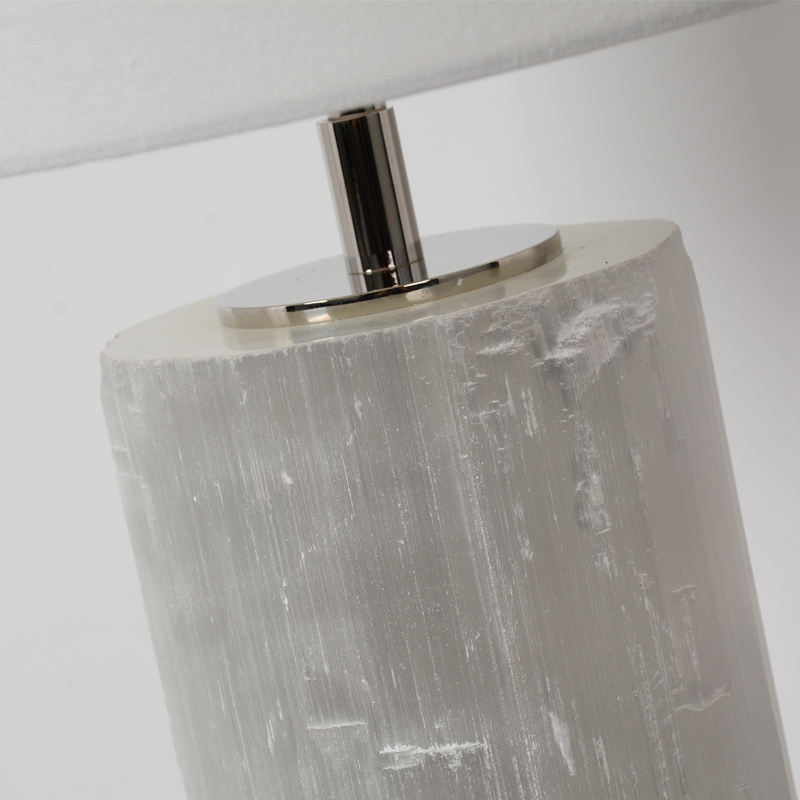 Elegant Home Decorative Bedside Natural Selenite Stone Column Base Fabric Lampshade Table Lamps for Living Room