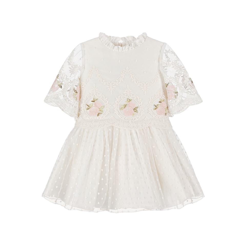 Elegant Infant Dresses Girls Age Group Children Plus Size Floral Pattern O-Neck Sustainable Cotton Dress Summer-for 9 Years Old