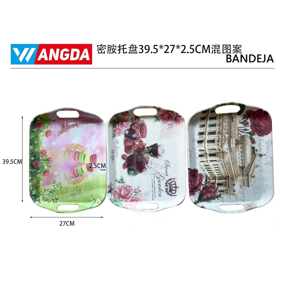 Elegant Large Melamine Tray 39.5*27*2.5 Plastic and Wood Restaurant and Home Serving Food Tray Recyclable
