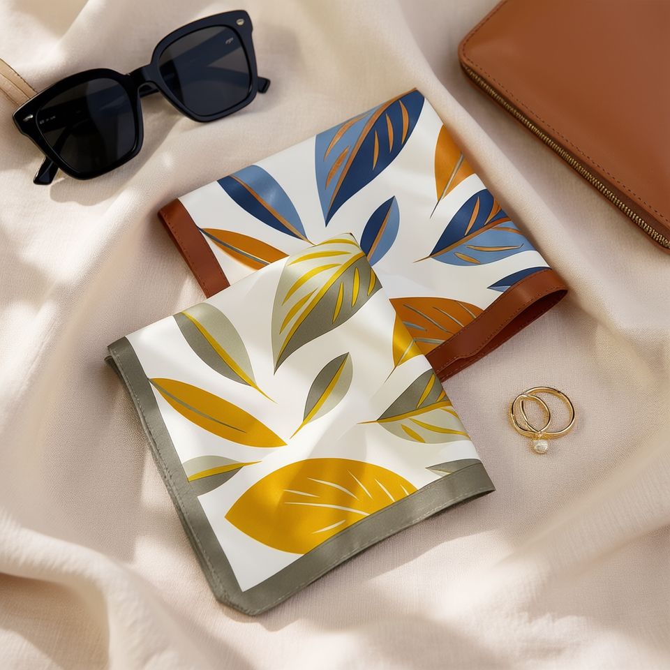 Leaf Pattern Silk Scarf 70x70Cm Square For Women Fashion Accessory