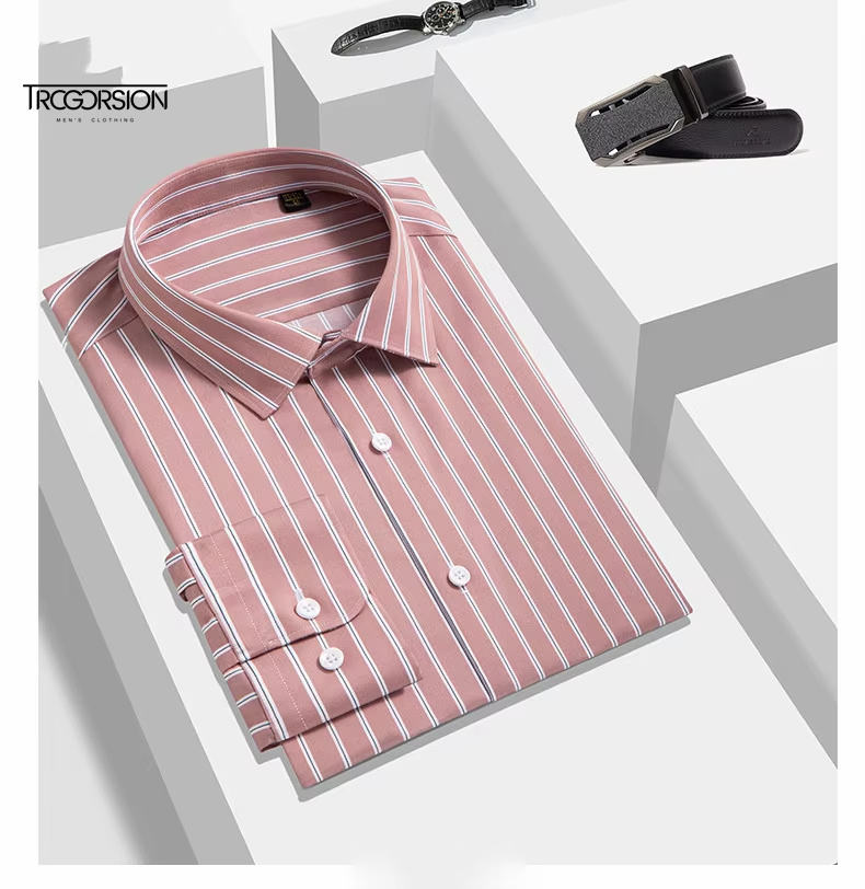 Camicia elegante da uomo, tinta unita, estiva, ecologica, senza bisogno di stiratura, resistente alle pieghe, traspirante, con chiusura a bottoni singoli, casual business.