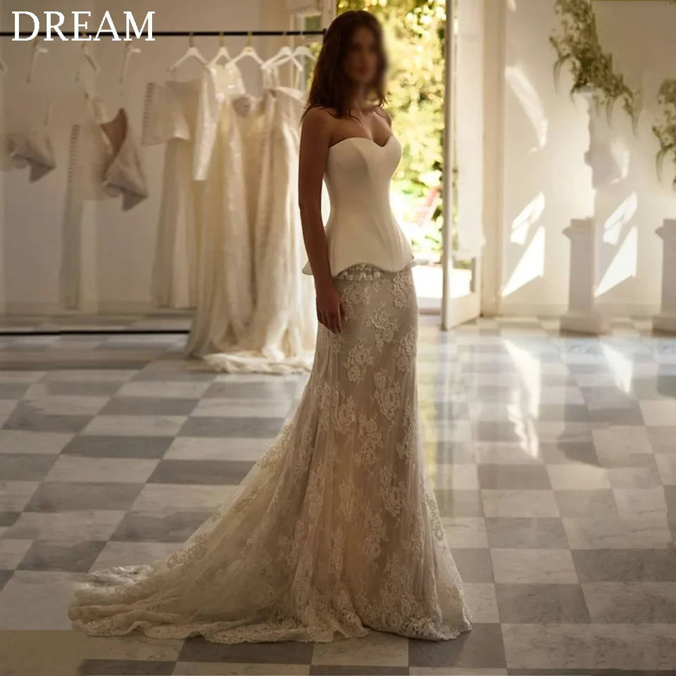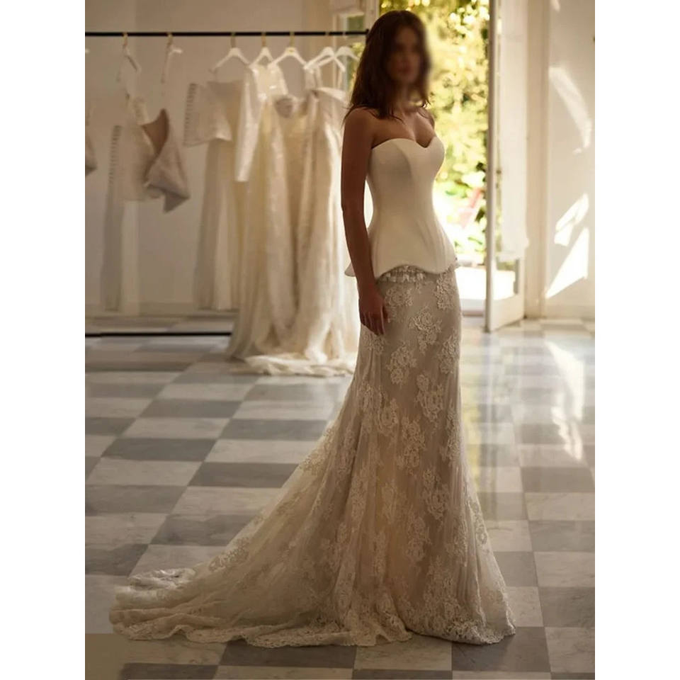 Elegant Mermaid Wedding Dresses Lace Floor-Length with Sweep Train