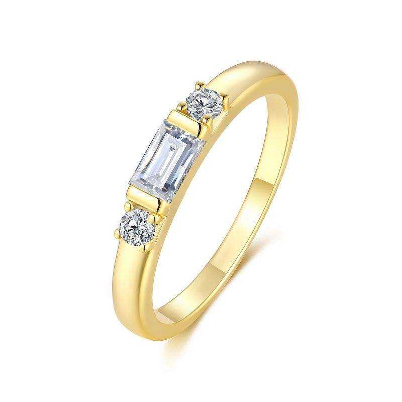 Elegant Moissanite Ring 0.12Ctw Baguette Cut 925 Sterling Silver 18K Gold Plated For Women Engagement Wedding Gift