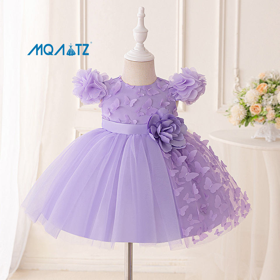 Elegant Newborn Baby Girl O-Neck Satin Dress New Design Pattern Leopard Flowers Formal Princess Frock Kids Party Dress