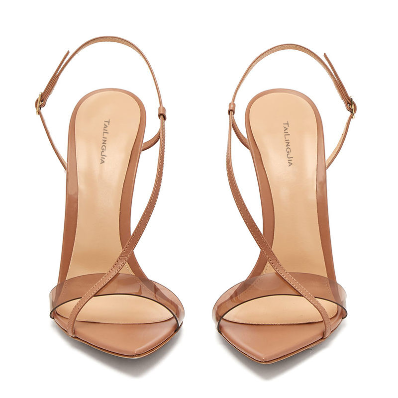 Elegant Nude High Heels for Women Heeled Strappy Sandals for Ladies Open Pointed Toe Stiletto Heel Sandal Summer Shoes 2019