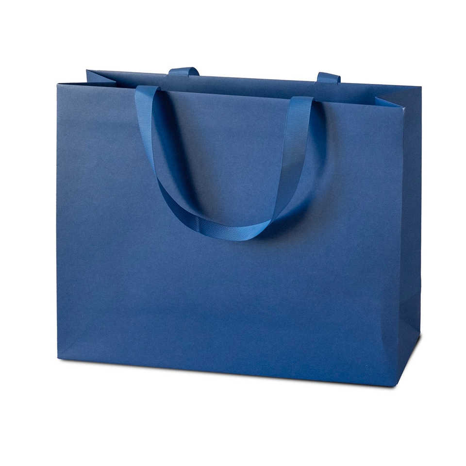 Elegante Shopper di carta con manici in gros-grain 38cm + 14cm x 32cm