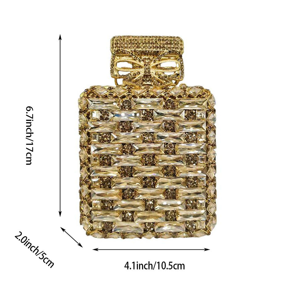 Elegante Borsa da Sera a Forma di Bottiglia di Profumo per Donne, Borsetta da Sposa con Strass Scintillanti