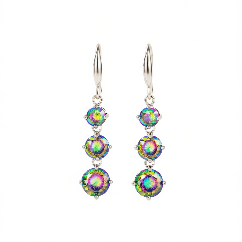Elegant Rainbow Quartz Drop Earrings 925 Silver Claw Setting Crystal Rhinestone Women's Party Classic Jewelry