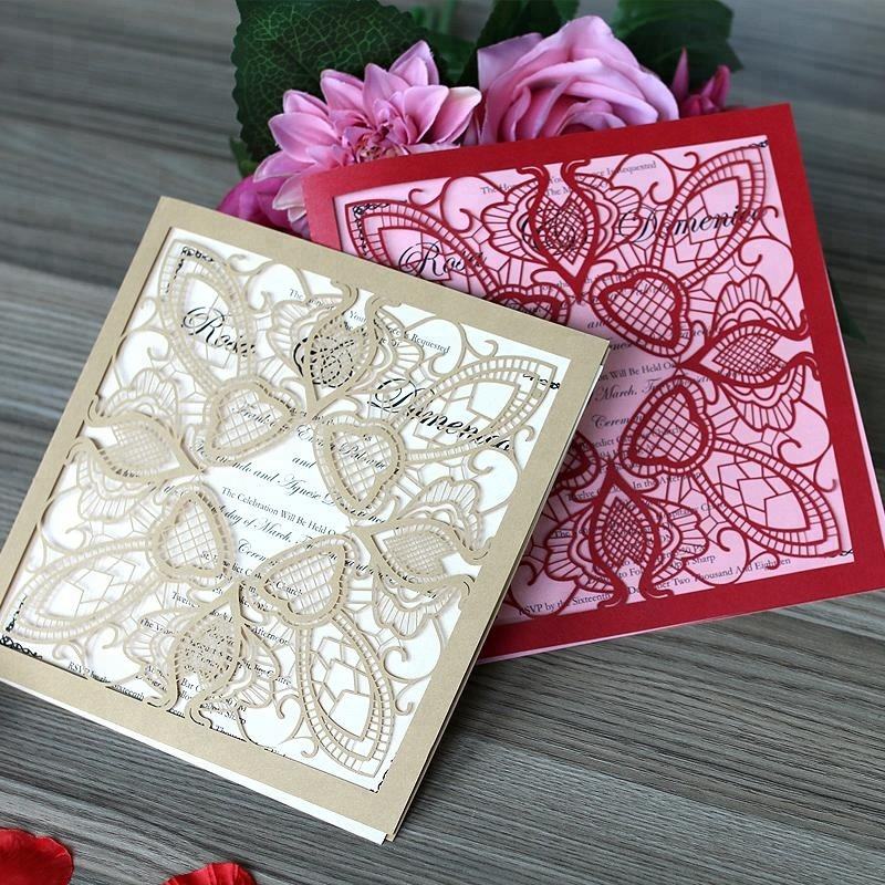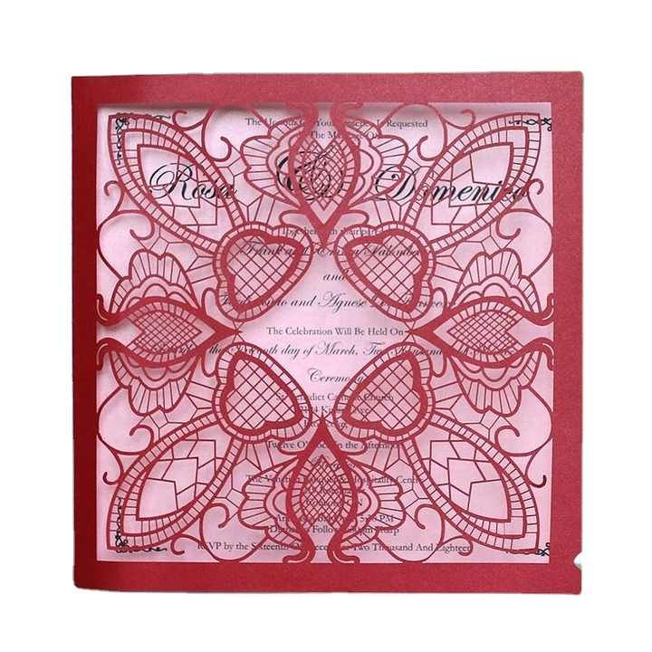 Elegante cartoncino rosso per inviti di nozze in pizzo con taglio Laser e cartoncino con motivo vuoto