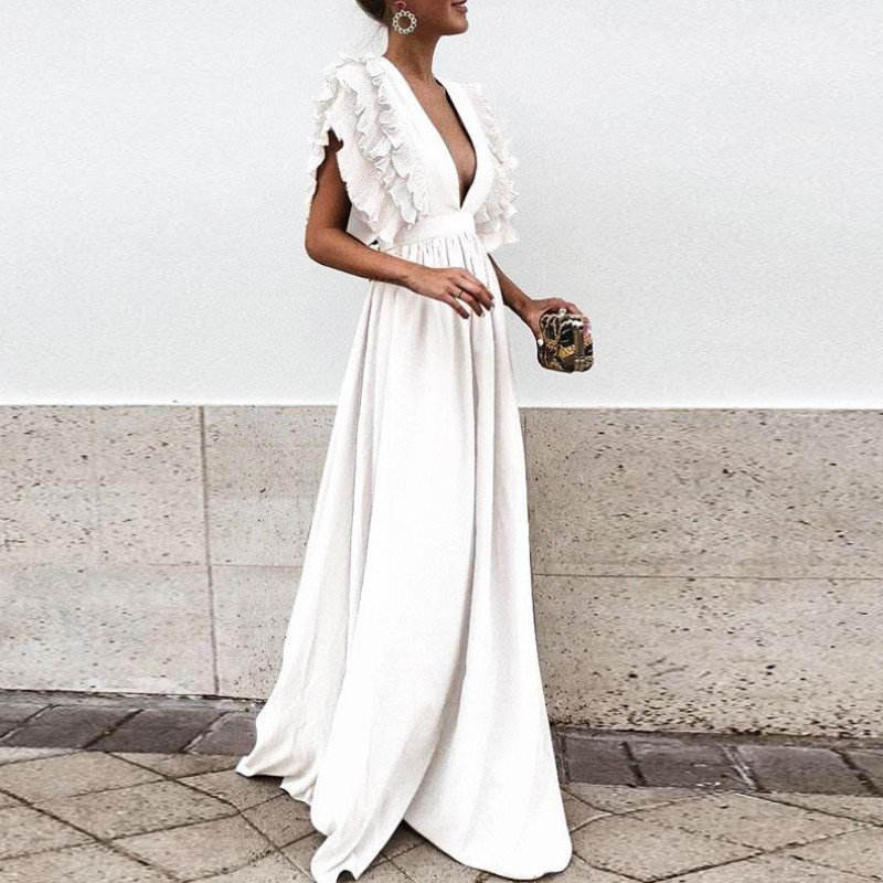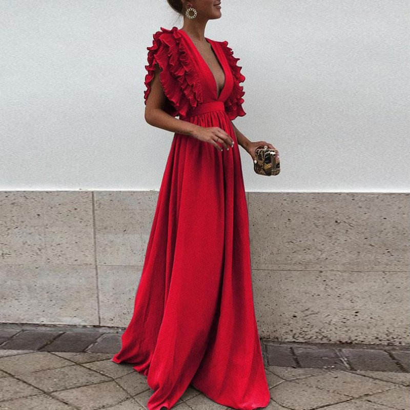 Sequenze da donna abito plissettato plissettato trasparente abito da sera formale formato XL a linea lungo fino al pavimento maniche corte a fiori