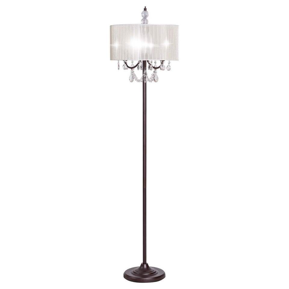 Elegant Sheer Shade Floor Lamp with Hanging Crystal LED Bulbs