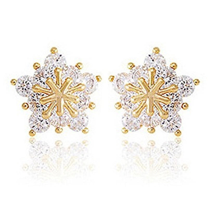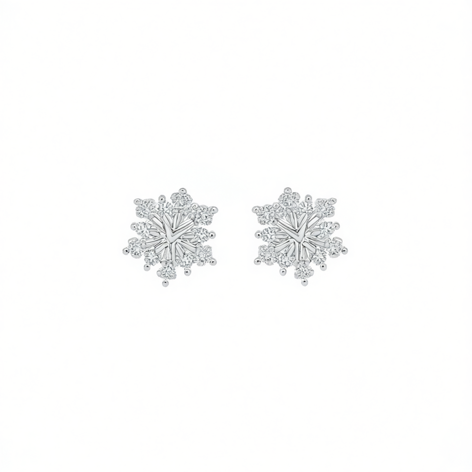 Elegant Snowflake Stud Earrings 925 Silver Crystal Rhinestone Round Brilliant Cut Claw Setting Classic Women's Everyday Wear