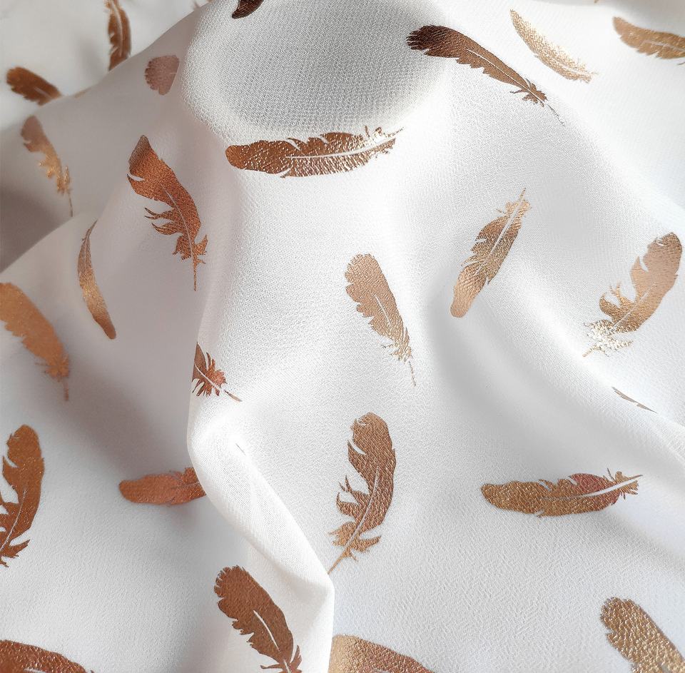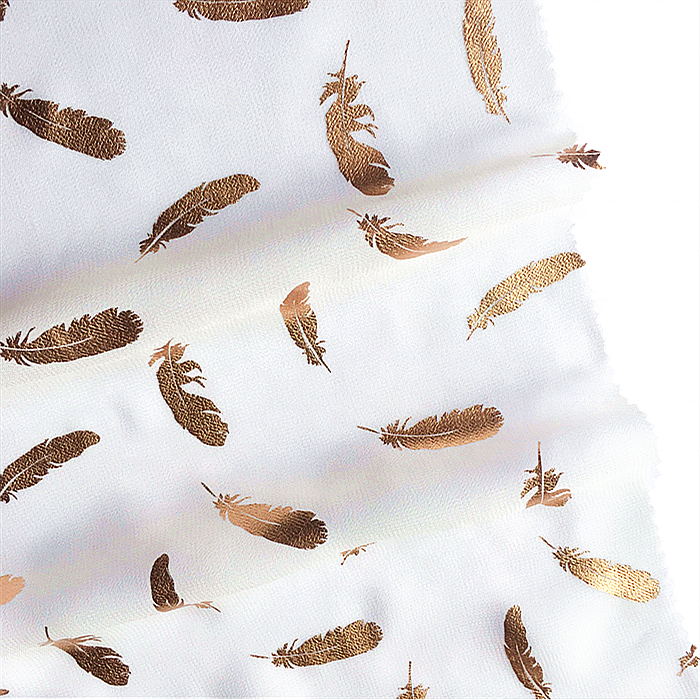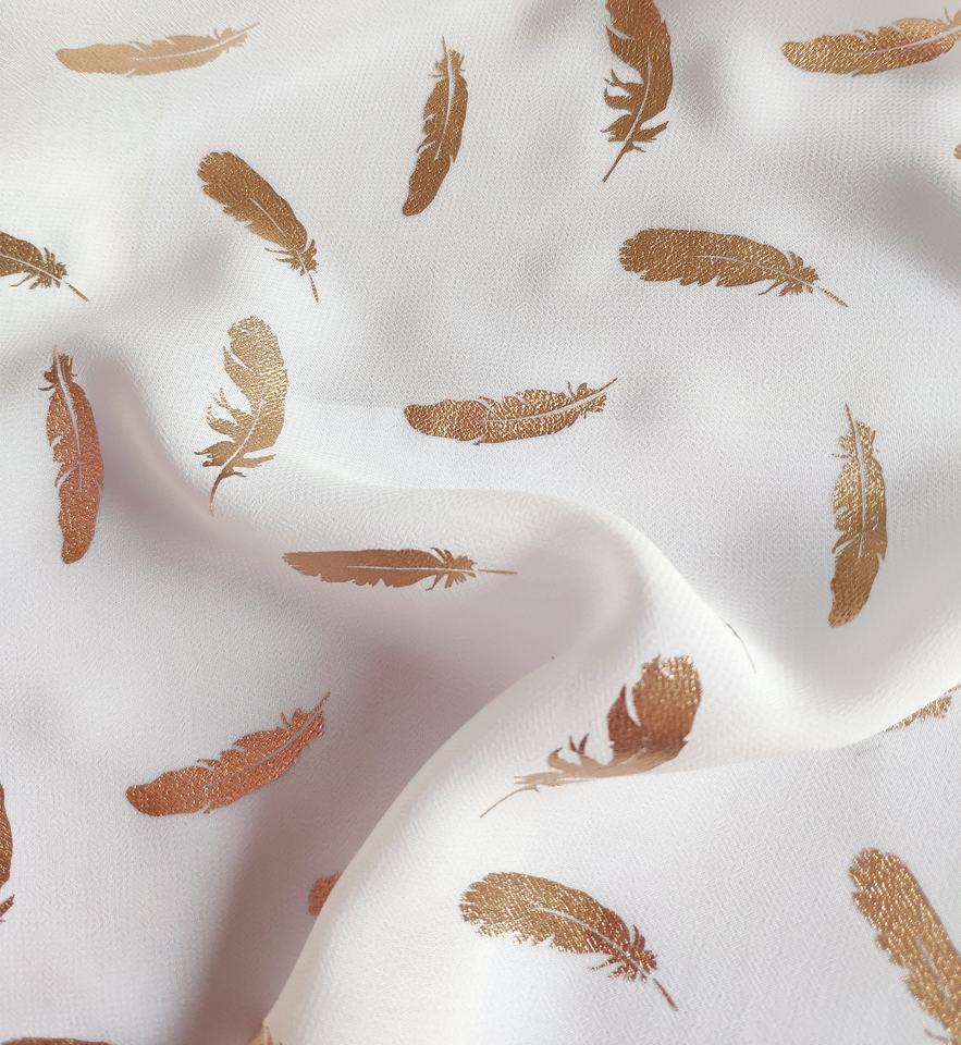 Elegant Soft Gold Leaves Foil Printed Chiffon Fabric for Dress