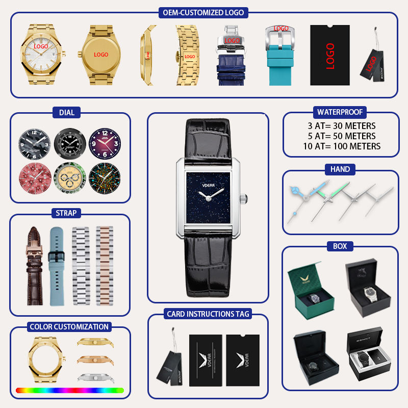 Orologio quadrato ultrasottile classico-elegante al quarzo impermeabile quadrante numeri arabi e loghi personalizzabili unisex lusso