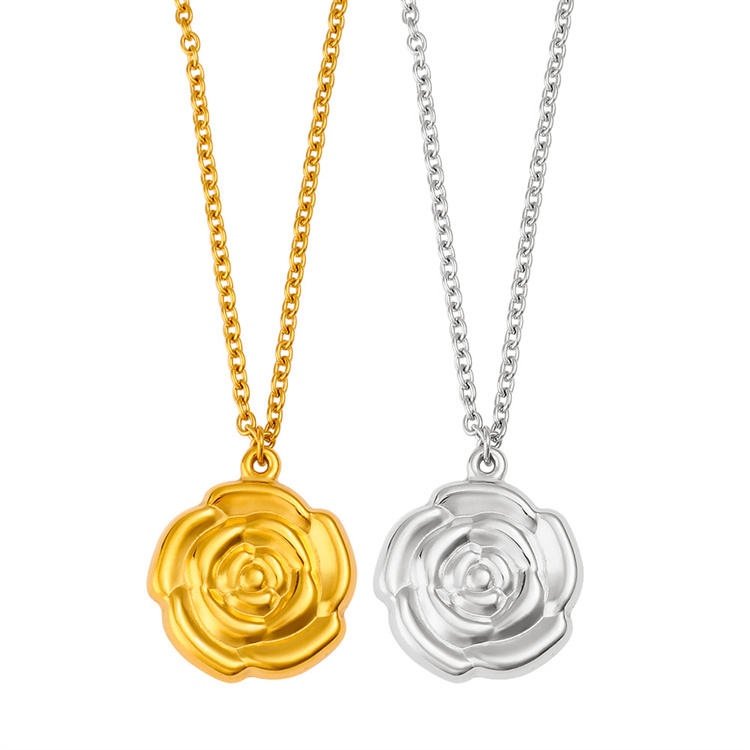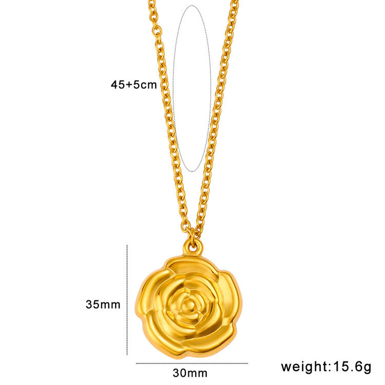Elegant Trendy Rose Flower Pendant Necklace for Women 18K Gold Plated Stainless Steel Chain Fashionable Jewelry Gift for Her
