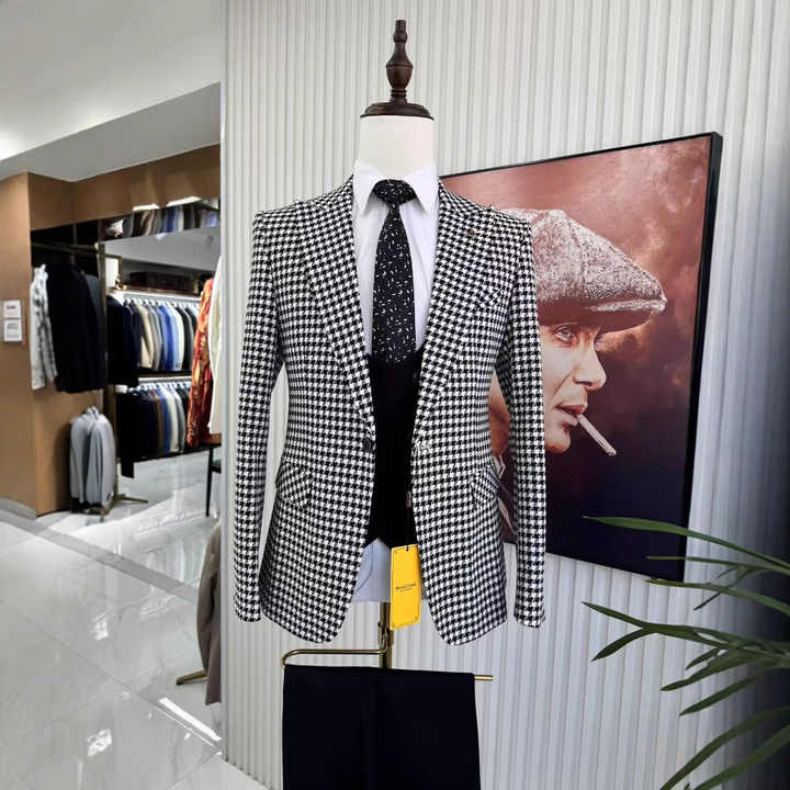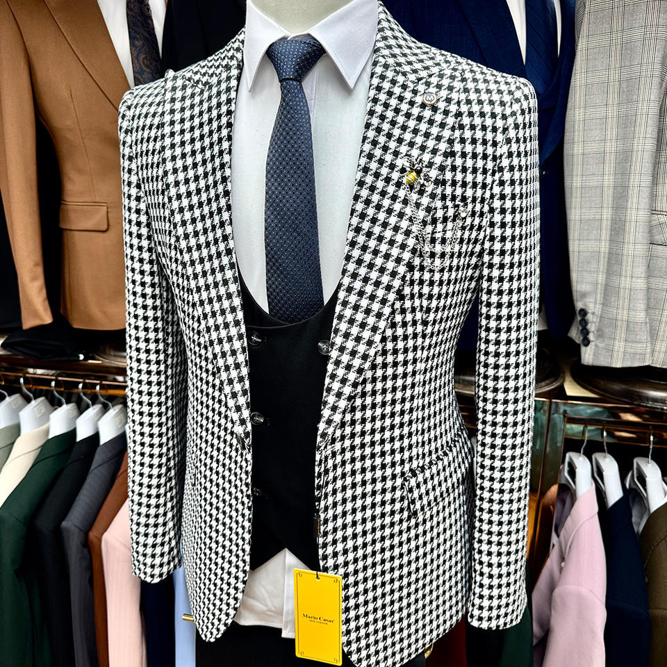 Elegant White Black Mens Suit 3 Piece Set Single Breasted Slim Fit Blazer Vest Pants for Business and Cocktail Parties