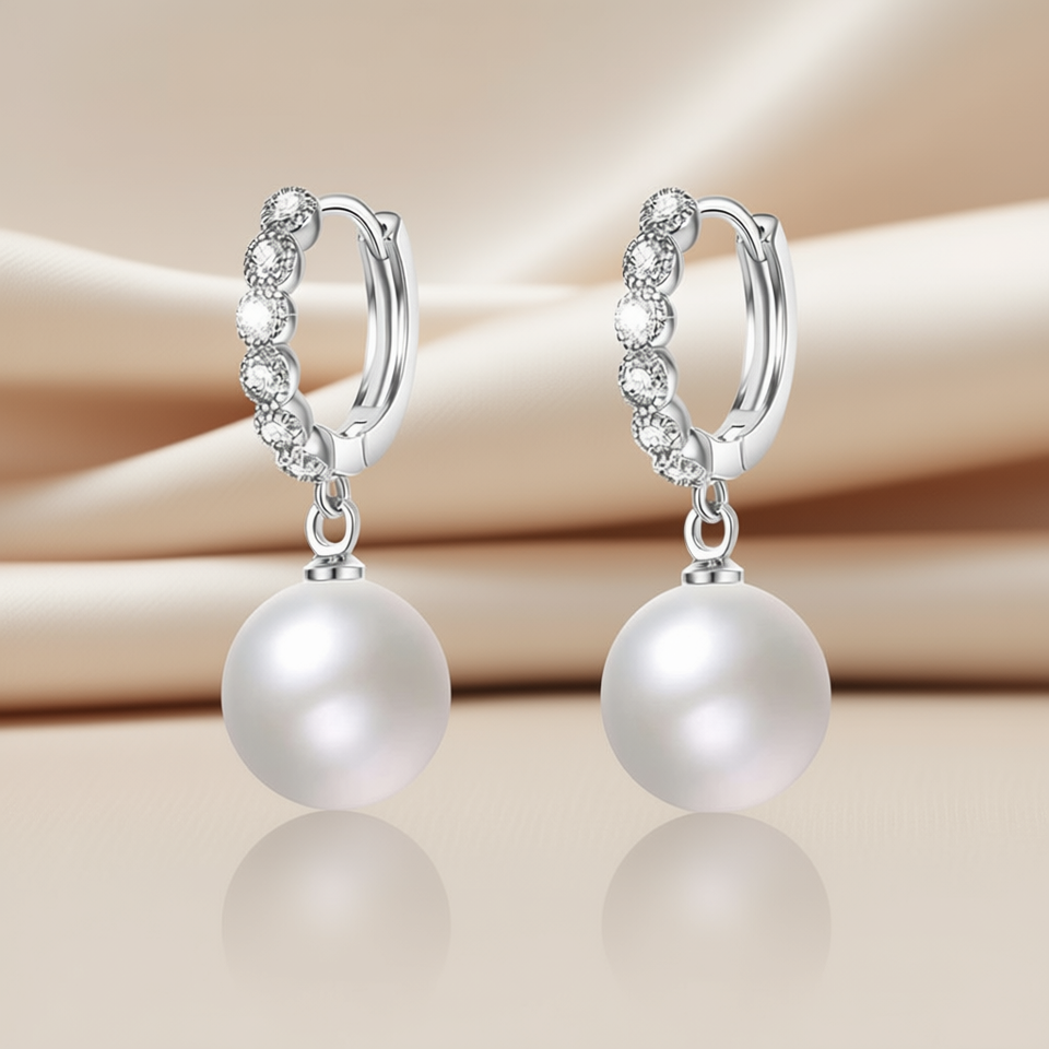 Elegant White Gold Plated 925 Silver Hoop Earrings With AAA Faux Pearl Drop Classic Wedding Jewelry For Women