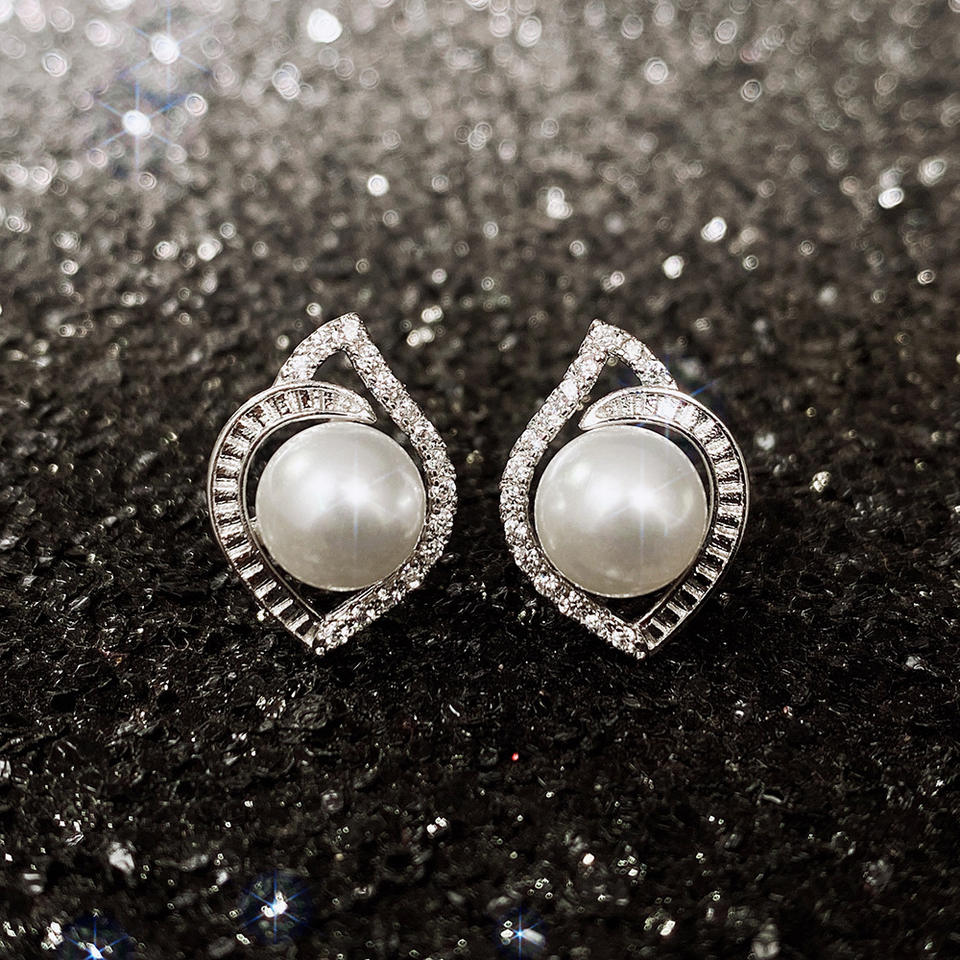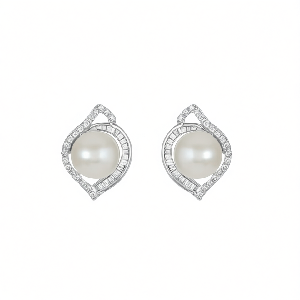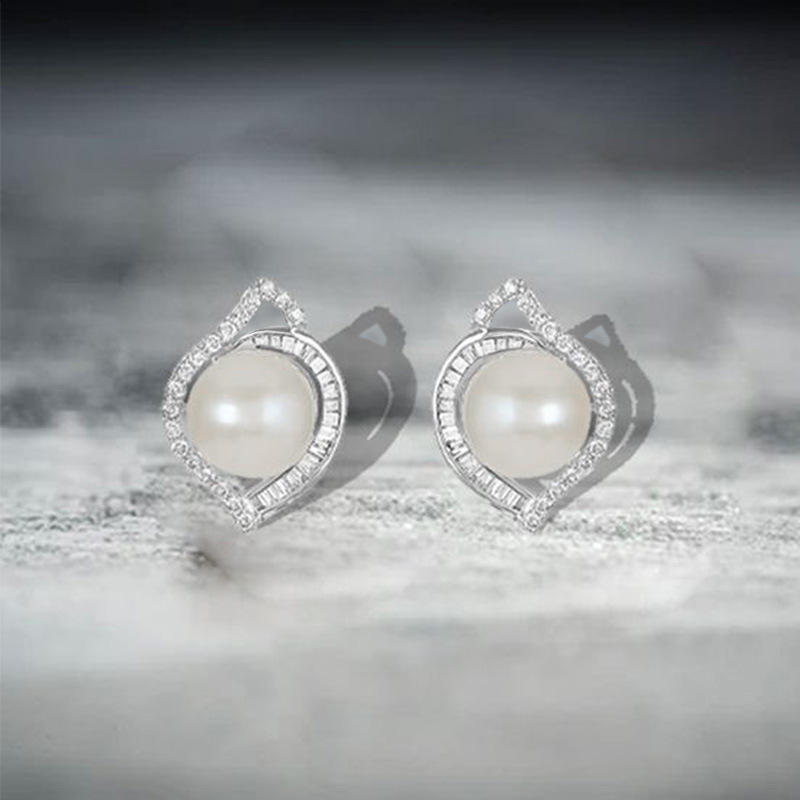 Elegant White Gold Plated 925 Silver Stud Earrings With AAA Akoya Cultured Pearl Geometric Design For Women Wedding Jewelry