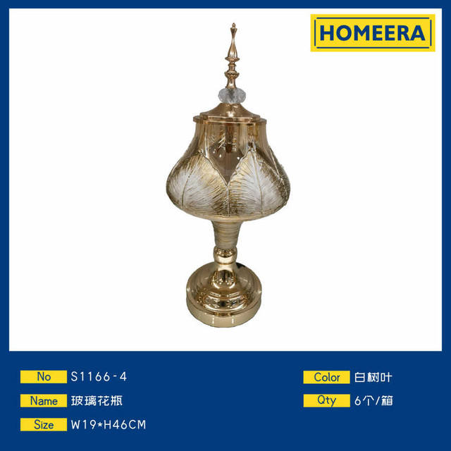 Elegant White Leaf Design Glass & Crystal Vase 19x46CM Alloy Accents W19xH46CM