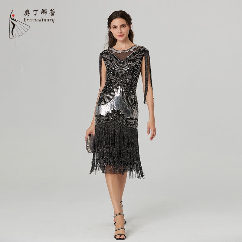 Elegant Women Party Glitter Dress With Fringe Flapper Vintage Gatsby Sequin Dress