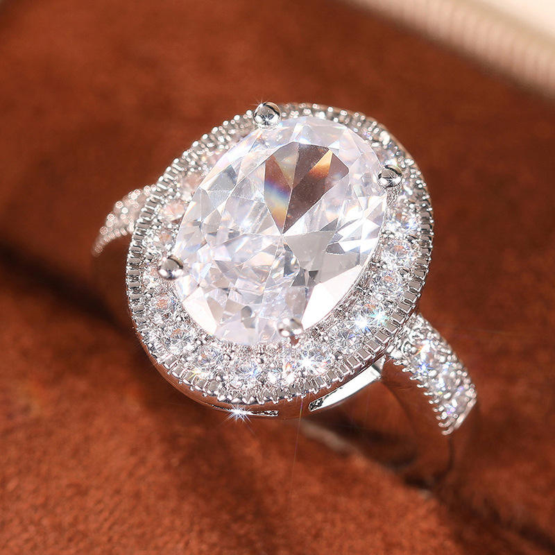 Elegant Women's Cocktail Ring With Natural Oval Garnet Pave Setting Engagement Fashion Jewelry A033